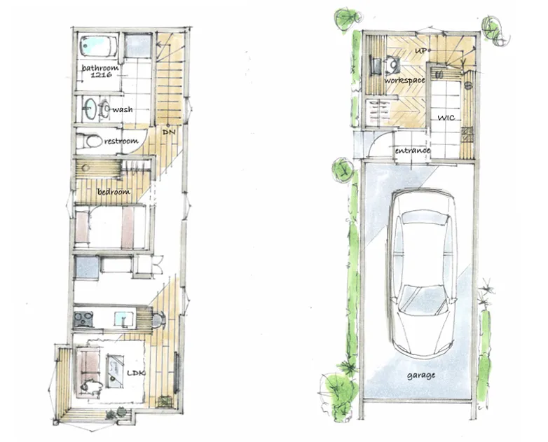 車やバイクが好きな方にとって、ただの駐車スペースではなく、“ガレージ”そのものが暮らしの一部になるような設計を大切にしています。
